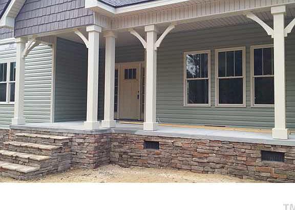 Good looking and expandable Craftmans Style Ranch with UNFINISHED BONUS AREA APX. 1700 SQ. FT. FOR FUTURE EXPANSION UPSTAIRS ! Lrg family room*kitchen/dining w/lam. and bead board , centr island*GORGEOUS master w/HUGE WIC*dual vanities*garden tub/sep. shower*LARGE spare beds*sep. laundry*nice front porch & AWESOME private back deck surrounded by trees for privacy in back yard! Hard to find .98 lot in the country but 5 minutes from Dunn, Benson, Coats, and Erwin. Large 2 car garage with lots of storage!