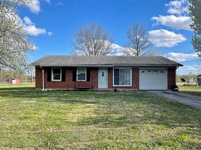 All brick - 3 bedrooms, 1 bath home on approximately .34 acres! Laminate flooring throughout most of the home, plenty of storage, newer lighting fixtures, and separate dining! Appliances including the washer/dryer remain with the property! One car attached garage with automatic door opener! Partially fenced-in backyard with concrete patio and basketball goal! Dining room table and leather couch included.