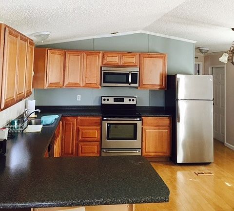 This completely remodeled home has been well cared for. All that you need to do is move in. Seller has recently put in all new flooring (Wood and Carpet), rehabbed both bathrooms for a more 'modern' feel, updated all of the kitchen cabinetry with custom cabinets as well as counter tops. New paint throughout, all new interior plumbing, brand new blinds, and all stainless steel appliances stay in this home! Home sets in an already established park that has a monthly fee attached, within that fee includes sewer and trash~ For additional storage seller has a large shed for the extra needed storage. This home is beautifully done and a must see