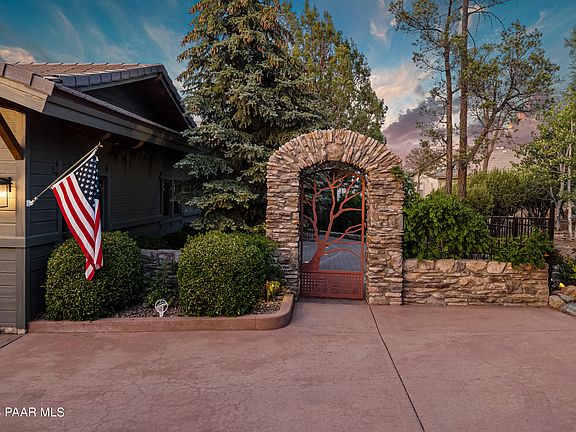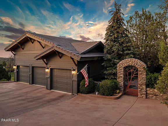 Behind the main gate of the coveted Hassayampa Village Community awaits the ideal setting for those seeking a stunning mountain home with soaring architectural details designed by Bill Otwell, inviting rustic elegance, and a flexible floorplan to perfectly accommodate many living situations. And let's not forget the phenomenal views of the golf course, Thumb Butte, and the mountains beyond! The main level features a cozy living area with stone fireplace, dining area, spacious kitchen, and hearth room. Also on the main level are the primary ensuite bedroom, guest ensuite, two offices, additional bath, and laundry room. One of the offices doubles as an additional guest room! The lower level offers a large living area, two guest rooms, and an additional bath. Roomy 3-car garage.