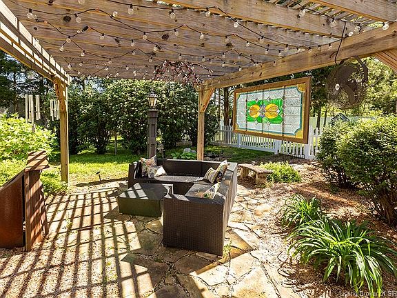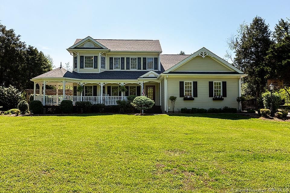 Happiness is a magical back yard and a pool full of friends! This home has so much to enjoy. An enormous wrap around porch, a gazebo, a pergola, a lagoon pool, and its fun pool house. Inside there are so many rooms its hard to count them! A big, first-floor owners suite is oversized and extended by a sunroom and a view of the pool; a formal living connected to a formal dining room plus a 17 vaulted family room with a gas fireplace. The kitchen was designed to feel the outdoors too. A large island and breakfast bar are perched to catch yet another view of the back yard through divided light Andersen, casement windows. Oh yeah, those windows are throughout the house! Two skylights flood the living area with sun. Upstairs are three more bedrooms, two share a Jack and Jill bath and the other is a bonus room under the eaves. The basement has 2 family rooms with plenty of room to spread out and still shoot pool by the bar or sit by the fire and watch TV. The sellers created a fenced in paradise in the backyard. The trees were carefully chosen and planted to create a lovely park accented by two water features, a playhouse and yes, an inground pool. A giant pole barn tops it off!