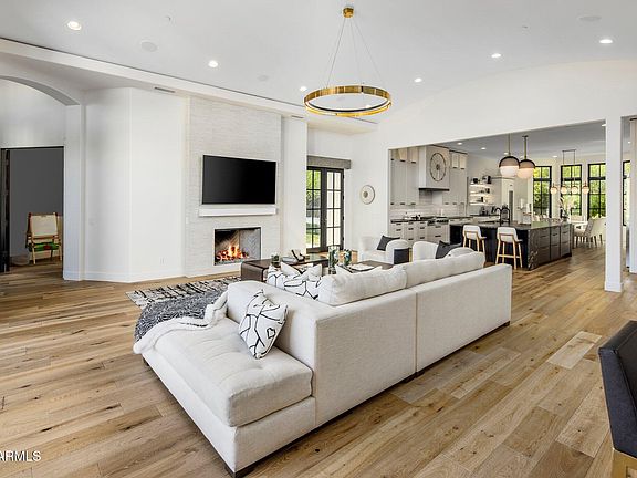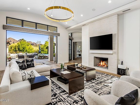 Stop looking; you've found your dream home! This completely remodeled, one of a kind modern estate is sure to impress with its designer finishes and stylish flare, while still maintaining a luxurious Arizona feel. Walking through the entry path, hearing the trickle of the water feature and staring directly at Camelback Mountain, your jaw will hit the ground. Tall ceilings and a collapsing wall, perfectly frame Camelback Mountain. With 4 en-suite guest bedrooms, a stunning primary suite, plus a bonus room that would be ideal for office or play room there is plenty of space for everyone. Primary suite is a slice of heaven with cozy fireplace, sitting area, oversized bathroom and not just one, but two, oversized walk-in boutique clothing closets. A gourmet kitchen that looks like it belongs on the cover of a magazine and features eat-in island, Wolf range, SubZero and a full beverage station (coffee bar or wine ... depends on the time of day). Tranquil backyard with infinity edge pool, outdoor kitchen and a putting green. Don't wait or else you may miss it!