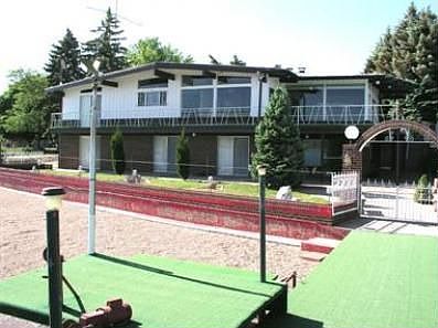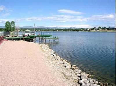 Lake Home! Waterfront property backs to Hidden Lake, end of cul-de-sac. Recent remodel: new carpet, new paint, new roof! Dramatic lake and mountain views. Great property for entertaining. Kitchen stainless steel appliances, cherry cabinets, tile counters and floors, double oven & cooktop range. Oversized 2 car garage with basement access. Work benches included. Door opener with remote. Large basement family room (walkout) with fireplace insert and small kitchenette, 3 bedrooms, 2 bath, walk-in safe, hot water heat, swamp cooler, backyard patio/bbq's/boat dock. You have your own private beach right in your backyard. Lake privileges are sold separately by the lake owner.