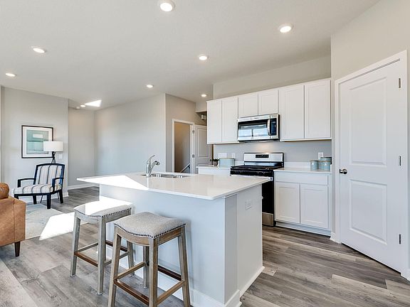 One level living at its finest! The Harmony from DR Horton gives you 3 bedrooms, 2 bathrooms, and 0 stairs! This well laid out floor plan provides everything you need while keeping maintenance manageable! 9-foot knockdown ceilings with LED disc lights make this home open and efficient. A well-appointed kitchen with gas range, vented microwave fan, and corner pantry make mealtime a breeze! Just off the dining area is a slider that opens to an oversized concrete patio. The primary suite with walk-in closet and attached bathroom is tucked away in the back corner of the home for privacy. An electric fireplace accents the generous living room. And at the front of the home, 2 more bedrooms and a full bath! The home comes with sod, irrigation and landscaping, as well as smart home technology! Located in a quiet yet convenient neighborhood where you have parks, and Junction 70 Grill within walking distance! Just a short drive to everything your heart desires in Woodbury!