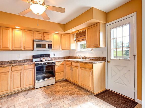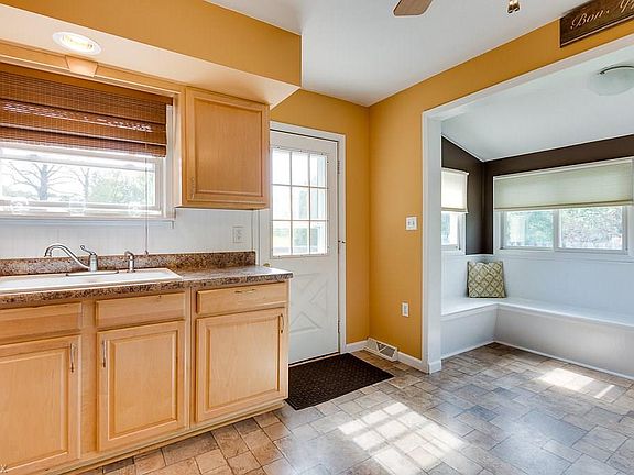 Come and tour this adorable updated exterior and freshly painted interior two-bedroom ranch. Maple kitchen cabinets with bead board back splash and a updated countertop! Kitchen appliances all stay! Dining nook surrounded by windows includes built in bench seats which open for extra storage space! Extend the entertaining to the outdoors through the door off the kitchen which opens to a 24 x 10 wood deck! Beautifully landscaped yard! Bright and sunny family room! Large laundry room! Attached garage! Move in ready! Home Warranty Included!