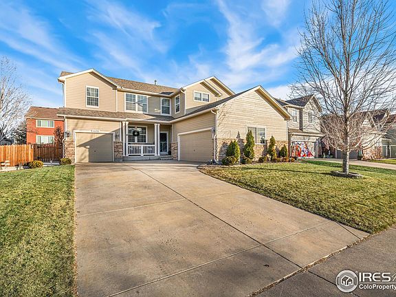 Welcome to this beautiful home in the Sagebrush neighborhood! Enjoy peace of mind with a new water heater (2024), plush new carpet(2024), and fresh interior paint throughout. The extended driveway leads to a spacious three-car garage, perfect for your vehicles and storage needs. The home's curb appeal is undeniable, featuring a manicured lawn and a new concrete pathway that wraps around to a private, fully fenced backyard-ideal for BBQs and gatherings. Relax on the covered front porch, perfect for morning coffee or afternoon tea. Inside, the front entrance opens to an office room and dedicated dining room. The open-concept kitchen and living area boast vaulted ceilings with elegant alcove for displaying artwork, enhanced by natural light streaming through large windows. The kitchen is equipped with ample cabinets and stainless steel appliances. The main floor also includes a half bathroom and a laundry area with storage, conveniently located near the garage. Upstairs, a spacious loft overlooks the living room, providing additional living space. The oversized primary suite offers a luxurious retreat with a five-piece bathroom and a walk-in closet. Two additional bedrooms and a full bathroom complete the upper level. The unfinished basement is ready for your personal touch. Located in the tranquil town of Firestone, Colorado, this home is near parks, Saddleback Golf Course, Firestone Lake, and St. Vrain State Park. Enjoy easy access to I-25, just minutes away. Don't miss the opportunity to make this beautiful home yours!
