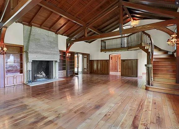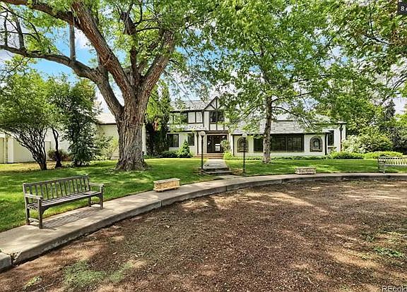 This exquisite estate has it all. A short drive down a gated, country road leads to this stunning historic mansion, perched high on the ridge with views in all directions. An rolling, 5+ acre lot with mature trees, expansive lawns, manicured rose gardens, incredible privacy, and surprises around every corner. A private beach, dock, and boat house on a beautiful private lake, ideal for morning paddleboarding or evening wake surfing. Only 20 minutes from downtown Denver, but feels like its own retreat in the countryside. The primary home offers 8000 square feet of living space, with 6 bedrooms and 7 bathrooms. A comfortable kitchen opens onto a large patio with stunning views of the mountains. A large, wood paneled great room with massive fireplace harkens back to old world luxury. The original curved staircase leads up to the bedrooms on the second story, including the truly remarkable "turret room." The home includes a large sun room that looks down over the lake, a billiards room, and a comfortable home office with wet bar. The massive, oversized 5-car garage includes a workshop and large mudroom. A short walk through the grounds will lead you to the 2 bedroom carriage house, attached workshop, and adjacent garage. Around the next corner you will find the lighted tennis court, with majestic views of the surrounding mountains.