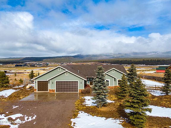 Explore this charming home just off Snow Bowl Road, south of Hwy 180. Revel in amazing peak views, a three-car garage, and an open floor plan. The master bedroom offers peak views, a spa-like bath, and a spacious walk-in closet. Two additional bedrooms, a second bath, and a bonus room with views provide ample space. The kitchen features new Corian counters and stainless steel appliances. With just over an acre of land, new flooring, and fresh interior paint, this turn key home is a rare find