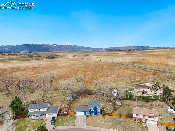 Spread your wings a bit in this Amazing 4 bedroom home on nearly half an acre! Private yard with outdoor fireplace, rock walls and Pikes Peak and front range views makes quite the place for cookouts with friend or enjoying a quite night with family. A large Entry way with tile floors and built-in seating and access to the backyard and garage makes for the perfect area to prepare for the outdoors during all seasons. The main level has bamboo floors, an updated kitchen with stone counter tops, stainless KitchenAid appliances, gas/convection stove & convection microwave as well as a separate dining space. The Living Room has vaulted ceilings, gas fireplace and a walkout to the deck. The Master and a second bedroom share a 3/4 bath on this level. The Lower level offers a large family room, 2 more bedrooms with beautiful built in shelving in both rooms, tons of light from the garden level large windows and a full bathroom. The park-like back yard has mature Apple and Pear trees, a large garden area, chicken coop for your sassy egg-laying beauties, a creek behind the fence and amazing views. The Shed offers a second story of storage and a ramp for your riding lawn mower. Large outdoor patio with pergola and paving stones with a fireplace for entertaining! Parking area in the back for your Camper or extra vehicles! No HOA, No Covenants! Conveniently located 5 minutes from both Ft Carson and Peterson SFB and 20 minutes to Schriever SFB. Easy access to the Powers Corridor and I-25.