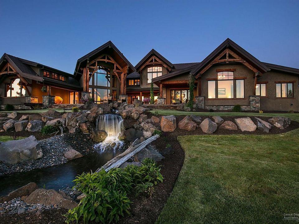 This exquisite estate is 9682 sf NW Timber-frame style has massive timbers, vaulted ceilings, open floor plan and custom stone work throughout. The custom home offers elegance in the country with a grand entry leading into the main floor living with a stone fireplace and beautiful great room. The gourmet kitchen is equipped with top of the line SS appliance, granite counter tops, two islands, a Butlers pantry and formal dining area. The glass hallway leads to the master suite with office, jetted tub, walk in closets and tile shower. Upstairs are two guest suites with a family room and kitchenette. Entertain in the downstairs game room with bar, wine room, and media room. The private patio overlooks waterfall, stocked pond with dock and Cascade Mountains to enjoy the sunsets and outdoor living. Property includes 25 acres of irrigation water rights for green pastures for livestock, owners Barn with studio, log bunkhouse, equestrian barn, hay barn, gated and borders public land.
