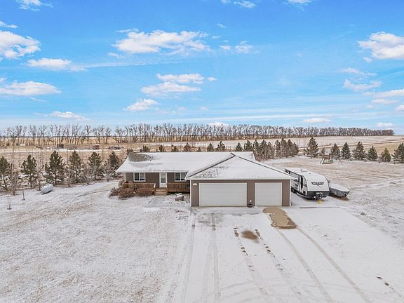 Welcome to this beautiful single-story ranch home with a spacious basement that is perfect for comfortable living and entertaining. As you approach, the inviting front porch provides an ideal spot to unwind and enjoy stunning sunsets. Step inside to a warm and welcoming open concept living space, where the family room seamlessly flows into the kitchen and dining area. The kitchen boasts elegant wood cabinetry, sleek stainless-steel appliances, and ample counterspace. To the left of the main living area, you'll find two generously sized bedrooms with a full bathroom conveniently located between them. On the opposite side, the primary suite offers a private retreat with a spacious layout, an oversized walk-in closet, and a well-appointed en-suite bathroom featuring a spacious counterspace. Just outside the master bedroom, head downstairs to the beautifully finished basement with hardwood flooring throughout. This level includes two additional bedrooms and a full bathroom. A set of stylish barn doors enclose a flexible space currently used as a craft room. The basement also features a bar with mini fridge that is perfect for hosting movie nights or entertaining guests. Lastly, this home highlights a heated three car garage, RV parking, and ample storage. Don't miss the opportunity to make this stunning ranch home yours! Call your favorite agent today.