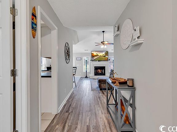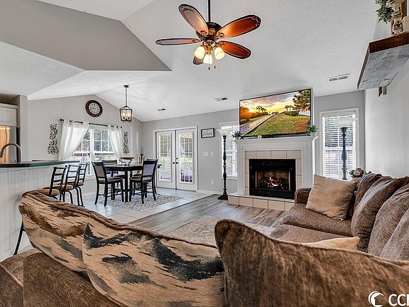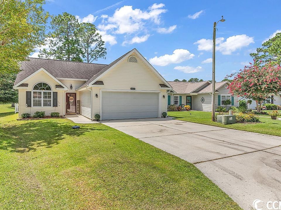 Welcome to this beautiful 3 bedroom/2 bathroom home! The moment you walk through the door you will appreciate the vaulted ceilings and open family room/dining room. The split bedroom floor plan is perfect for guests. French doors will lead you to the screened-in porch to enjoy the tranquil backyard. Some of the many upgrades include LVP flooring, stainless steel appliances, all new door knobs, outlets, switches, a new garage door motor including hardware, a completely renovated primary bathroom with new waterproof flooring, comfort height toilets, walk-in shower, tub, vanity, faucets, and new light fixtures. Myrtle Beach Golf & Yacht is a gated community with its own security. Amenities include a swimming pool, basketball and tennis courts, clubhouse, walking trails, and community activities. This location provides easy access to golf courses, shopping, restaurants, the Intracoastal Waterway, and the beach.