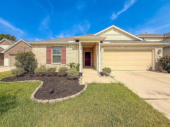 Move in ready single story in Katy offers bright open concept living, luxury vinyl floors, neutral paint, and abundance of natural lighr. The kitchen features white shaker cabinetry, granite counters, a center island with seating, stainless appliances, and gas range. The spacious living and dining areas flow to the backyard. The private primary suite has a bay window flex area, an oversized walk in shower, and direct access to a generous closet. Two secondary bedrooms, a full secondary bathroom, and a laundry room complete the plan. Brick and siding exterior, covered entry, two car garage, landscaped beds, and fenced yard. Minutes to Katy Mills and Typhoon Texas, plus LaCenterra, Mary Jo Peckham Park, and No Label Brewing. Near highly regarded Cypress Fairbanks ISD schools