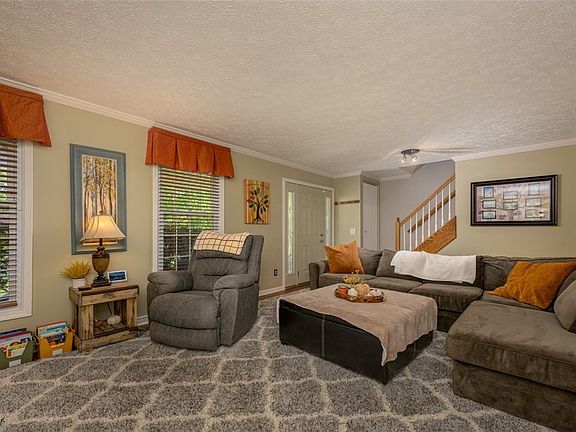 Awesome home! Newer concrete drive, exceptional landscaping and a covered front porch for relaxing are just the beginning! Spacious living room and dining room with LVT wood flooring and crown molding. Warm, eat-in kitchen with stone backsplash, stainless steel appliances, double oven and a swanstone sink. First floor half bath and laundry. Family room with brick gas fireplace, custom mantle and Anderson sliders to a private deck overlooking a treelined backyard with a darling storage shed. Master suite with private tiled bath. Additional bedrooms have massive closets. Also, another tiled full bath. Waterproofed lower level with glass block windows and tons of storage space. Side load garage with gas heater, storage shelves and a built-in workbench. Furnace, AC, and siding were all done in the past 5 years. This home is beautifully maintained and will not last long!