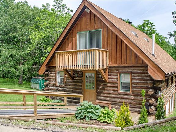 The ultimate for privacy! This Finger Lakes Log Home is situated on almost 20 acres. Chic rustic style open floor plan with coal/wood stove. "Loft Style" bedroom, bathroom on 1st floor and covered porch. Two story 24x32 barn with an additional 380 sq ft of living space showcases guest suite with one bedroom, 2nd bathroom, hot tub, gas fireplace ( not connected ) and covered balcony. Two tax numbers make up the fantastic setting where wildlife abounds, mature trees and small pond. Second parcel offers electric and well. The perfect year-round home, weekend get-away or Air B&B. Close to Hunt Hollow Ski Mountain, The Finger Lakes Trail, Canandaigua and Honeoye Lake.