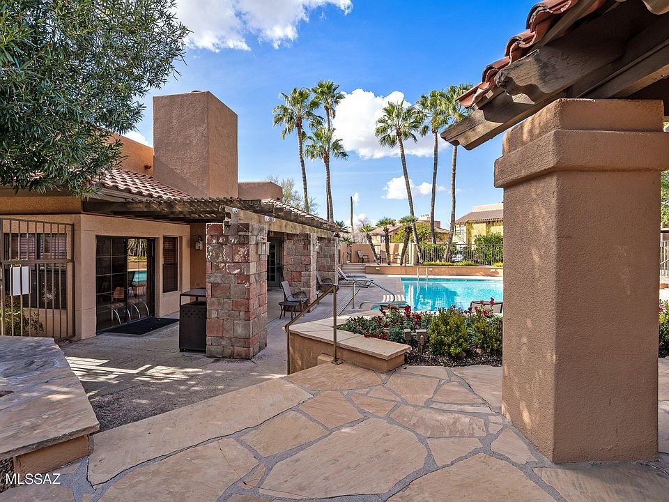 Rare opportunity in Catalina Foothills, community of Skyline Villas ground floor condo puts finest shops, restaurants and entertainment right at your fingertips! This well maintained property features an open floor plan, 2 bedrooms, 2 full baths, central A/C, granite tile counters, stainless steel appliances in the kitchen and natural wood burning fireplace in the living room. Great opportunity to enjoy the resort style of life that the complex is offering tennis courts, heated swimming pool/spa, club house and fitness centre.
