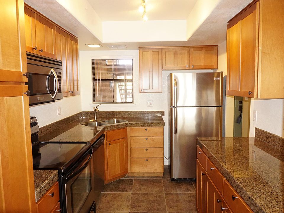 Beautifully updated first floor unit in the premium foothills location. Bright and open. Kitchen with S/S appliances and granite tile counters. Great room with fireplace. Enjoy mountain and sunset views of the surroundings. Walk to the award winning Manzanita School and the La Encantada shopping Mall for upscale shopping and great restaurants. Residents can enjoy the great clubhouse/fitness center with two tennis courts, pool/spa. Perfect unit for winter retreat, rental property or owner occupied. Move in ready. A wonderful unit to show and sell.
