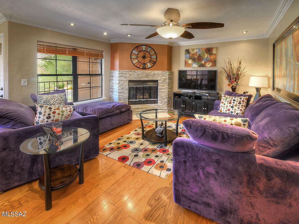 Beautiful mountain views from this beautiful contemporary condo in the heart of the Catalina Foothills. Updated & completely charming throughout - perfect for a lock & leave second home, investment property, or comfy primary residence. Location is everything & this unit has a terrific location with it's north-facing shady patio/balcony providing excellent Catalina mountain views, and near the pool & community amenities. Lovey kitchen & bath, it's all filled with soft natural light. Ez care with Newer HVAC and hot water heater (2018). HOA covers, Fire, Trash Service, Exterior area, Water and Sewer Fees. HOA also allows rentals with 30 day minimum. **FURNISHINGS AVAILABLE VIA SEPARATE BILL OF SALE**