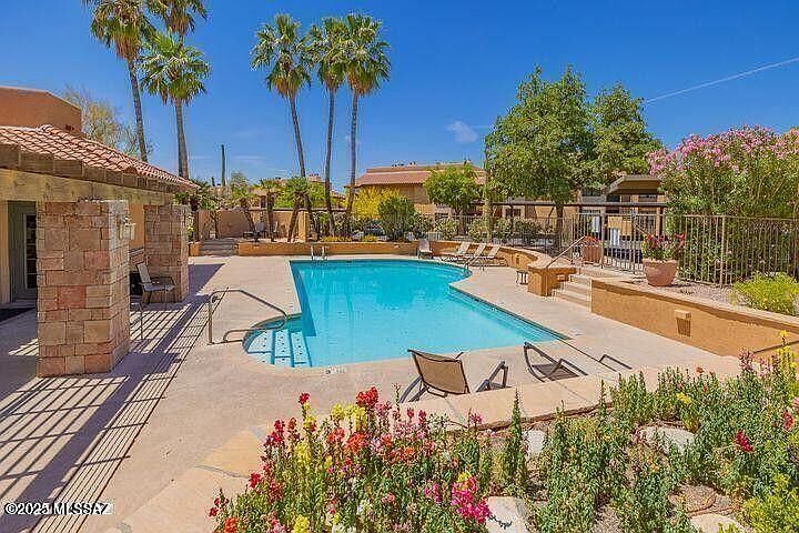 This 2BD/1BA condo is located in the desirable Skyline Village Condominiums. Spacious living/dining area, primary bedroom with walk-in closet and views of the Catalina Mountains. Kitchen offers SS appliances & granite counters. Private patio. Resort like amenities include a heated pool, spa, fitness center and tennis courts. Great location next to shopping, restaurants & more