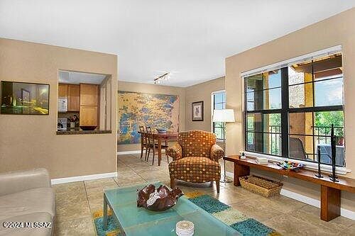 Sometimes the best things come in small packages thus this perfect one bedroom condo overlooking a little riparian area & sweeping view of the Catalina Mountain range. Close to La Encantada where you can enjoy coffee at AJ's or dinner at one of the many restaurants. Pool, spa & workout room & only a half mile to a trailhead heading into the Catalinas. It's a lifestyle! Professionally cleaned & read to move into Covered parking #58. Each condo has a water meter & is billed along w/HOA monthly fee. Furnishings may be purchased except for three pieces of art. SELLER IS LICENSED REALTOR IN THE STATE OF ARIZONA. TITLE WORK HAS BEEN STARTED. PLEASE ESCROW WITH LORI BALSINO, FIRST AMERICAN TITLE.