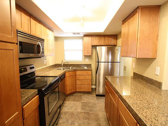 Beautiful 1 Bedroom fully furnished condo next to La Encantada Mall with beautiful views of the Catalinas. Condo includes sheets, towels, extra linens, pillows, and a fully stocked kitchen and bathroom for all of your gourmet needs. Come to Skyline Villas and see this recently remodeled condo, in a pristine secure area. This condo features 1 bedroom / 1 bath with a walk-in closet. Granite counters, new stainless steel appliances and great amenities. 1 assigned carport parking next to your front door, plenty of guest parking available. Enjoy a pool and hot tub, tennis courts, gym and clubhouse. Owner pays for water, sewage and trash. Tenant pays electric and internet. Dogs allowed, with a pet deposit, one month rent deposit, plus $200 non refundable cleaning fee. NO SMOKING ALLOWED.