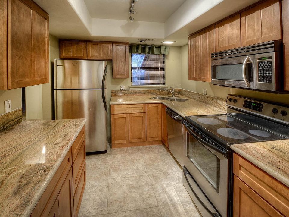 Location, Location, Location: This Skyline Village condo is located in a highly desirable quaint condo community nestled at the base of the Santa Catalina Mountains walking steps from La Encantada along with hiking trails. Best area of Tucson. La Encantada is Southern Arizona's premier lifestyle center, featuring AJ's Fine Foods, a variety of luxury retailers, and several upscale restaurants in a beautiful outdoor setting at the base of the Santa Catalina Mountain Range. La Encantada is the premier gathering place of the Catalina Foothills. CONDO is FULLY FURNISHED and EQUIPPED with everything you need including electronics, small appliances, kitchenware, houseware, clean linens, full-size washer & dryer, and much much more. Relax on your covered balcony overlooking the Catalina mountains or take a dip in the heated sparkling pool and spa! Amenities include Tennis Court, Fitness Room, Pool and Spa, Clubhouse, and walking paths. Condo boasts tile and laminate floors, a beautiful stack-stone fireplace, granite countertops, and designer light fixtures. Large bedroom with walk-in closet. Large Storage closet on patio & 1 covered parking space with additional uncovered space available within eyesight of condo. Do not miss the opportunity, this is the prime location you have been waiting for! Pets welcome, subject to owner approval. No pet deposit or additional fees. 6-month lease minimum. No Application Fee. Tenant shall arrange and pay for electricity and internet (Cable boxes, modem, and router already provided for Comcast). Move-in costs include 1st month's prorated rent and fully refundable deposit equal to a full one month's rent. Available 10/05/2021.