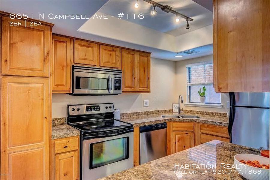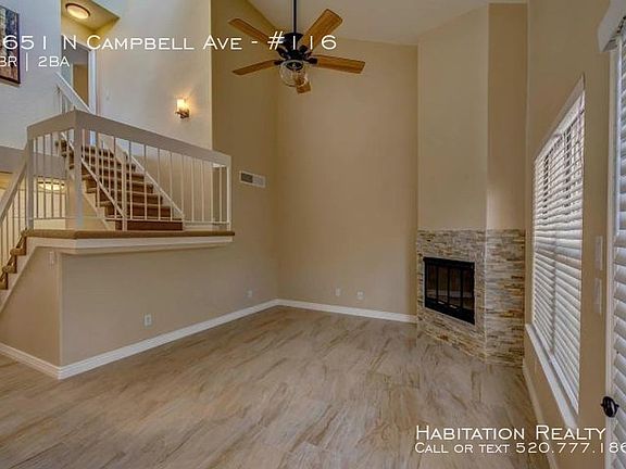 In an effort to stop the spread of COVID-19, we are providing pre-recorded walk through videos as an alternative to in person showings of rental properties. Once you have applied and been approved, you will be able to schedule an in person viewing at the property prior to signing your lease and paying the deposit. . Do not miss the opportunity to live in this quaint condo community nestled at the base of the Santa Catalina Mountains!. Walking distance to some of the best restaurants Tucson has to offer, shopping, and hiking. It's the location you have been waiting for! New ceramic tile downstairs, beautiful new stackstone fireplace surround, granite countertops and designer light fixtures. Large bedrooms with walk in closets. Large Storage closet on patio & 1 covered parking space. Sit on your private patio and look at the mountains or just steps away enjoy the amenities which include:. Sparkling pool & spa, tennis court, fitness room, clubhouse, & walking path. Available 12/12!. 2 bed/2 bath. 1,175 sq ft. Central AC. Covered Parking. Community Pool. Washer/Dryer. Dishwasher. $1645 due at lease signing. This includes a $1145 refundable security deposit, $250 non-refundable cleaning fee, and $250 non-refundable leasing fee. First month's rent due at move-in. Tenant shall arrange and pay for electric and gas,. Water, sewer, trash is included. Well-behaved and loved pets are welcome with an additional $200 per pet refundable deposit, subject to owner approval. We do charge a $40 per person application fee, and all potential tenants must pass a credit, criminal, and prior eviction screening. All tenants are strongly encouraged to carry renters insurance. Professionally managed by Habitation Realty. Equal Housing opportunity, of course!. Community Pool. Recreation Area