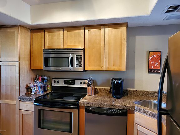 Seller will accept or counter offers betwn $235,000 and $245,000. One of the largest units in the complex. Entry through ground entrance, 2 story - no one below or above you. Large bedrooms, lower bedroom has walk in closet and built in desk area, Nice living room with fireplace (wood burning)., formal dining, kitchen offers updated cabinets and granite. Full bath downstairs and in master. Huge master! HOA covers: roof, ext landscaping, clubhouse, tennis and workout area. Mt views from master, Parking space no. 72 covered and plenty of parking in front of the unit. Walk to La Encantada Mall! A MUST SEE