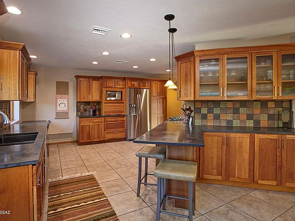 Enjoy panoramic views from almost every window in this exquisitely remodeled home in Coronado Foothills Estates. The 3000 sq. ft, 4BR/3BA house with a large yard and pool is sited to capture the beauty of the mountains, desert & sunsets. Custom features include a wrought iron & glass front door, vaulted ceilings, Brazilian slate counter tops, cherry cabinets, radiant heat floors in BA's, alder doors & metal roof. The main level has a spacious LR w/gas FP, DR, gourmet kitchen w/breakfast bar, 2BRs +office/or 3rd BR, laundry & 3 car garage. The lower level w/family room, BR and full BA offers privacy for guests. Enjoy the best of Tucson casual living in the spacious yard w/pool or on one of the decks watching the sunset! District 16 schools, conveniently located & voluntary HOA