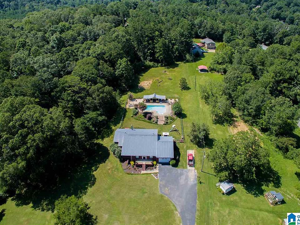Serenity now! 4.67 Acres! Through the iron gates & up the hill to your own personal paradise - 4 Bds/ 4 Full Baths & room to run. Gorgeous landscaping greets all visitors & beckons you to come inside. Full brick exterior w/ metal roof. Hardwoods flow into the large living rm w/ corner fireplace. Updated kitchen features granite counters, & stainless appliances including double oven & gas stove. Large dining is easily accessible from both kitchen & living rm. The breakfast area includes a bfast bar & space for a large table - Perfect for socializing while cooking is taking place! 4 bdrms on the main level & 3 full baths, including a large master suite w/ corner garden tub & walk-in closet! Spiral stairs lead to one of many selling features - an incredible game room! The basement also houses a safe room/storm shelter, additional full bath & huge unfinished area for storage, additional parking or work space. Outside is the backyard of your dreams - inground pool, tiki bar, hot tub & more!