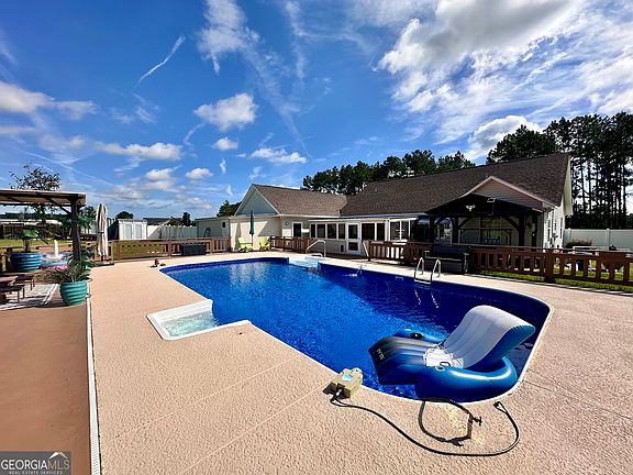 Charming 3-Bed, 3-Bath Home with Inground Pool on 1 Acre! Welcome to your dream home! Set on a full acre, this beautifully maintained 3-bedroom, 3-bathroom property offers the perfect blend of comfort, function, and outdoor enjoyment. From the moment you arrive, you'll appreciate the fenced-in front yard and cozy screened-in front porch-ideal for morning coffee or evening relaxation. Step inside to a thoughtfully designed split floor plan that ensures privacy and space for everyone. The partially open layout features soaring ceilings and a stunning wood accent wall with a sliding barn door, adding charm and providing separation for guest quarters or a second living space. The heart of the home includes a bright and open kitchen, dining area, and a versatile bonus space that works perfectly as a home office, breakfast nook, or reading corner. Retreat to the spacious primary suite, complete with multiple closets and ample storage. Each additional bedroom is well-sized, with access to full baths for family or guests. Step out back to your private oasis-featuring a screened-in back porch that overlooks a beautifully landscaped, privacy-fenced yard with an inground pool and extended concrete patio-perfect for relaxing or entertaining. Additional highlights include: Large mudroom with laundry area Attached 2-car garage with plenty of storage space, an RV parking area with 220V outlet Peaceful, private setting with no HOA Don't miss the opportunity to own this rare gem that combines peaceful country living with all the comforts of a well-appointed home.