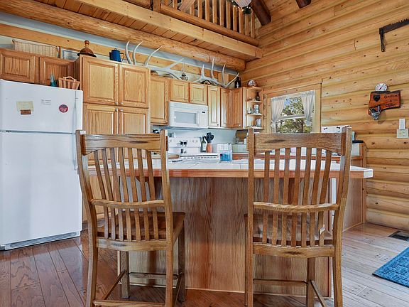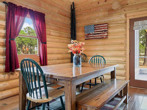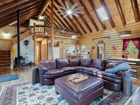 Here is the Log Cabin in the woods you have been waiting for. It sits on 5.35 acres AND backs the National Forest. Bring your horses to enjoy the cooler weather in the summer. This is a Beautiful log cabin. 2 bed, 1.75 ba, with an awesome sleeping loft. 1829 SF. Very nice custom oak flooring and cabinets. Kitchen has a lot of counter space and breakfast bar for all those family gatherings. T&G ceiling with open floor plan. Propane fireplace in the great room as well as a pellet stove. Fantastic newly screened in deck so you can enjoy all the wildlife as they walk by. 2 car garage with work bench to store all your toys. Pavers to garage as well as the backyard lead you to a wonderful firewise fire pit for those enjoyable weekend visits. Lot is very well maintained and ready for you to enjoy your dream retreat in Happy Jack.