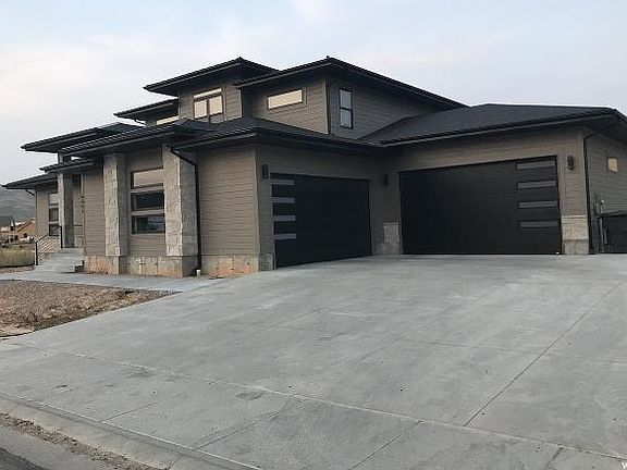 TOTALLY custom modern home in coveted Cottonwoods Phase 4! This home is CRAZY upgraded - you MUST come see it. Only reason we are selling is that we also own another lot in the same area and are building again - we were going to wait until next year, but interest rates are so low we decided to build now. Awesome neighborhood and the only home for sale in this new phase, so very limited selection! Home is basically brand new and barely lived in, so everything is PERFECT! Asking $849,900 (realtors, if you have a buyer - let’s talk!). • 4,900 Sq Feet all finished (2,100 main, 2,100 Basement, 700 Upper level) • Huge 4 car garage (two - 2 car extra deep garages, 10’ and 9’ doors, and wide and lots of shelving for storage and all painted). Easily park a car and large boat in one of the garages. • 6 Bedrooms (huge master suite on main level, 3 upstairs, 2 in basement) • Beautiful office with modern wall plank and barn door • 2 story all metal fireplace - breathtaking! • Monster kitchen island with commercial appliances • Huge commercial fridge and freezer • Twin ranges and ovens with commercial 60” range hood • Giant walk-in hidden pantry with “Costco-Door” (small door from garage to pantry so you easily put your groceries right from your car into your pantry!) • TONS of custom kitchen cabinetry - SO much room! • Very custom lighting throughout • Gorgeous lockers in mudroom • Beautiful laundry room with sink and drying racks • Whole main level has beautiful custom tile flooring except in bedrooms • Very large master suite - custom modern planking on walls, 8’ custom made barn door, and huge windows with awesome views • Master bathroom has oversized tub • GIANT master shower with 2 heads on wall and 1 rain shower overhead and huge bench • Walk-in Master closet is HUGE • Upstairs railing custom made and simply gorgeous • All rooms upstairs very large with walk-in closets - all rooms feel like they are part of the main level as great room opens up to the 3 bedrooms, really an awesome floor plan! • Full custom kitchen in basement - not a cheap one just to put something down there • Large open space and tall ceilings in basement • 2 bedrooms in basement are VERY large and huge walk-in closets • Basement has large cold storage room with custom shelving • Basement is all custom wood flooring except in bedrooms • Basement also has very large separate storage room with lots of shelving for storage • Large covered patio that has shade most of the day and has gas hookup for BBQ grill • Large RV pad • Tankless water heater - hot water NEVER ends! • 2 A/C units and 2 furnaces • Water softener in garage for easy filling • 2x6 exterior walls and blow-in insulation • Natural rock on exterior • Metal Roof accents • Home is basically brand new so you know everything is perfect!