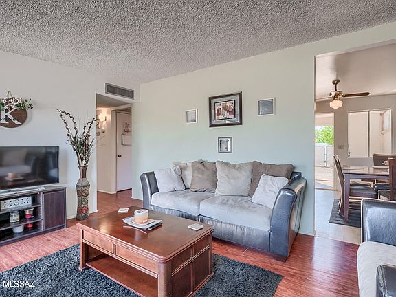 This conveniently located 3 bedroom, 2 bath townhouse is situated on a large corner lot with views of the Catalinas. The back patio has been enclosed and provides an additional 400 Sq. ft. of flex space and is perfect to be used as an office or playroom. The roof was recently replaced (not just recoated) and has a transferable 4-year warranty. The back yard is easily accessed with additional parking available. Great location close to Davis Monthan AFB, shopping, dining and schools. Don't delay, this one won't last long.
