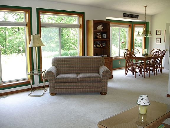 Meticulously cared for 14 year old ranch home with daylight windows, one owner, married couple. Main Floor: Foyer, Large great room with gas fireplace, dining area, spacious kitchen with lots of cupboards, 1/2 bath, large walk-in pantry with room for a freezer, Library/Den with built in oak book shelves and cupboards. Huge master bedroom with seating area, his & hers closets, large bath with double sinks, Three season porch Lower Lever: Family room, two good size bedrooms, full bath New: Roof, Water heater, Asphalt driveway, Water pressure tank Neighborhood Description In a quiet sub-division, lots large enough to still maintain that country feeling