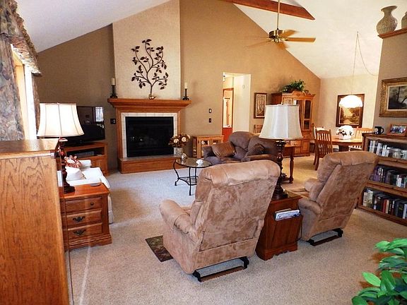 Beautiful home on a quiet cul-de-sac. Sepp built, quality construction and modern finishes. Spacious layout and great natural light, home features an open living space with vaulted ceilings and a natural gas fireplace; beautiful kitchen with Corian counters, and family room with walls of windows on 3 sides. Main-level master suite offers a terrific ¾ bath with laundry, custom built ins, and a walk-in closet. Large lot, new roof, new furnace, new central air. 2 car attached garage, sprinkler system, potters shed, deck and lovely landscaping. Must see to appreciate, truly move-in-ready.