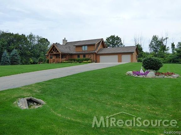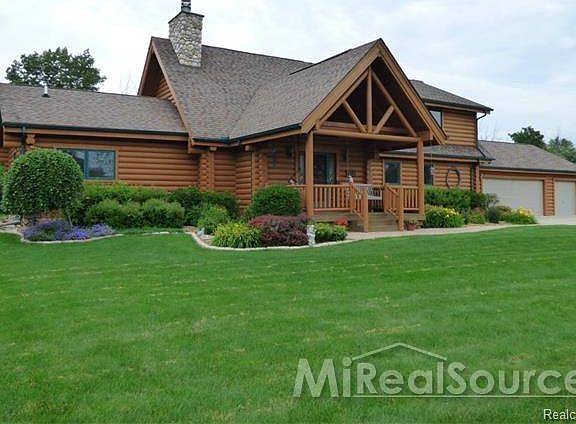 Single Family Home for sale by owner in Washington Twp, MI 48095. CUSTOM BUILT FULL 10 INCH LOG HOME 2.25 ACRES Minutes from downtown Romeo. Private gravel dead end rd. 2 bedroom up.Master bedroom main floor. Large kitchen.Wide open floor plan.Finished insulated basement w\wet bar and 1\2 bath. 3 Car full size garage 780 sq ft. Large laundry room. Sun room off patio door.Generator transfer box. Invisible dog fence.Gas or natural fireplace. Cedar closet in basement. Please only serious and qualified buyers.