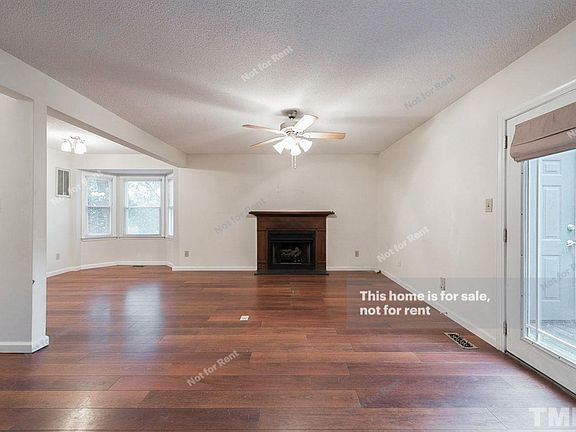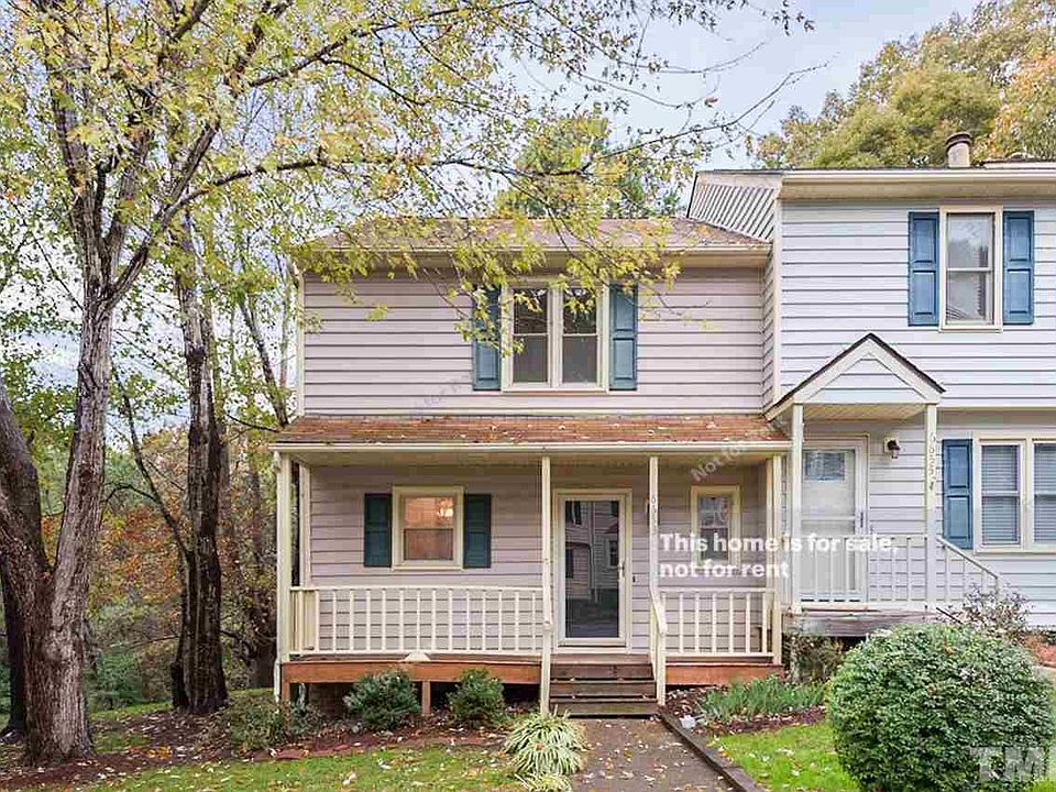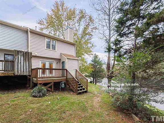 This Raleigh two-story townhome offers a fireplace, a kitchen pantry, a walk-in closet in the master bedroom, a deck, and nearby dining options.