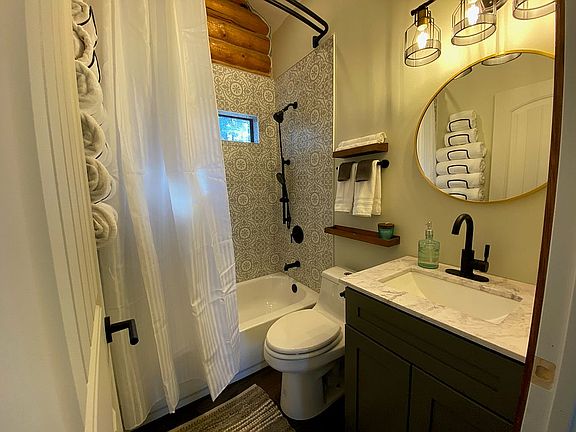 - Exterior Features: Tall Pines on Lot, Porch/Deck, Landscaped, In the Trees, View of Mountains, Patio, Work Shop