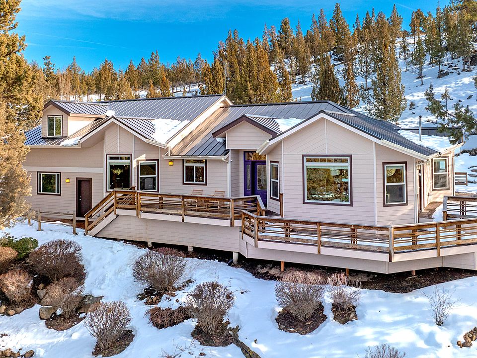 Perched on the hillside, this residence offers a 1.13 acre property adorned with lush, well-established landscaping and peek-a-boo mountain views. The spacious living room with vaulted ceilings, built-in features, picture windows, and doors leading to the deck, seamlessly integrates the peaceful outdoors with the comfort of indoors. The main level flows from the living area to the kitchen and dining space, creating an ideal setting for hosting and entertaining. The primary suite serves as a private retreat, featuring patio doors, dual sinks, and a generously sized walk-in closet. Upstairs you'll find a spacious bonus room, perfect for a 3rd bedroom, office or cozy TV lounge. The 3 car garage with abundant storage space, is optimal for housing all of your Central Oregon essentials, and the RV parking is an added bonus! Situated near Sisters, Tumalo and Bend, this neighborhood also offers stunning views of the Cascade Mountains. Don't miss out on this remarkable home!
