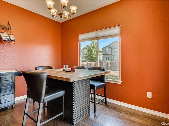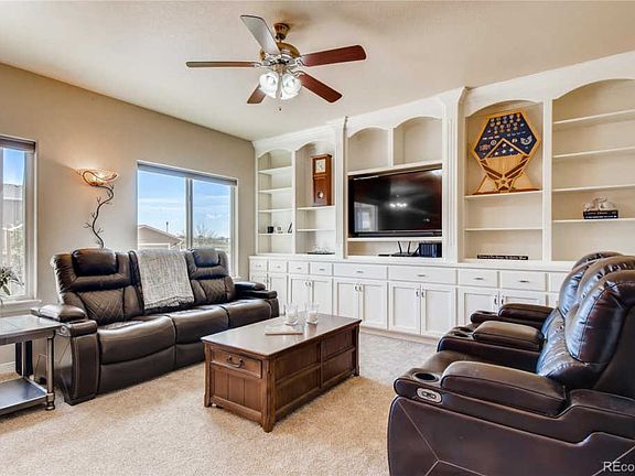 This beautiful 6 bedroom, 4 bathroom home will take your breath away. Everything has been chosen with thought and care, from the unparalleled mountain views to the fine details inside. As you enter the home you are drawn to the bright and open floor-plan. Entertain family and friends in your entertainers kitchen featuring stainless steel appliances, granite counters, island with seating area and programmable LED lights above and below cupboards that are app-controlled/voice controlled. The spacious living room features gorgeous built-ins and additional storage. The many windows throughout the home flood with natural light. Additional features include, but are not limited to dimmable LED lighting throughout the home, motion sensing light switch in laundry room, Schlage Smart Lock, Nest Thermostat and super quiet Badger disposal. Step out to the nicely finished patio/entertainment area and fenced back yard to enjoy the Colorado sunshine. This is a great place to host a barbecue, gathering, or enjoy your morning cup of coffee. Your dream home is located in a small, low traffic neighborhood. The area features community events at the local park, the Frederick in Flight balloon launches (seen from the home,) town fireworks visible from the front yard, great restaurants and shops, a community center, grocery store only 3 miles away, quick access to I-25 and within walking distance to Thunder Valley K-8 school and Spark Discovery Preschool. This is a perfect place to call home!