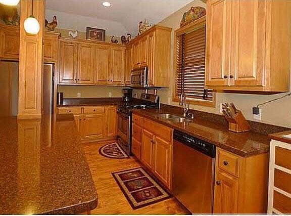 Enjoy one level living in this former model w/all the upgrades: maple cabinets/floors, silestone counters/island, sun room, deck, 2 flpcs, vaults. Main flr master suite and laundry. Fantastic sunset views. Walkout LL with huge family rm and 2 bedrms.