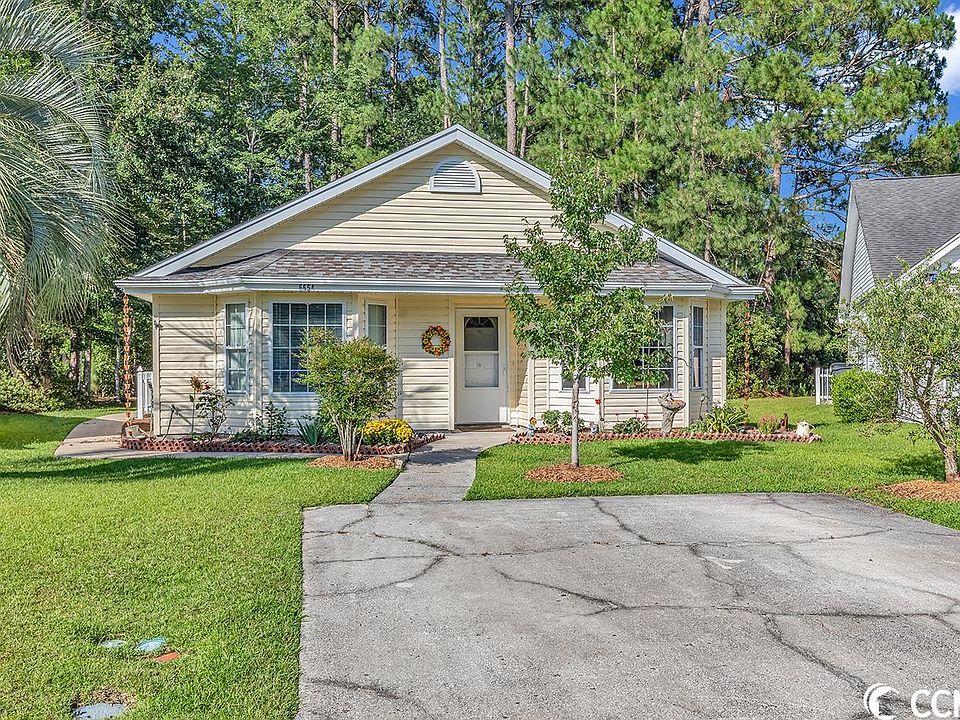 Welcome to the home located at 6654 Cinnamon Fern Lane located in the popular gated Myrtle Beach Golf and Yacht Club Community with close proximity to the beach! Nestled on a quiet cul-de-sac, the home boasts of 2 Bedrooms and 2 Full Baths. The kitchen offers tile flooring, granite countertops, double sink, tons of cabinet space, large breakfast nook centered between 3 lovely windows allowing for lots of natural light, a range-top, Jenn-Air double built-in wall unit that includes a convection oven and microwave and even a pizza oven! The open floor plan provides a generously sized dining area which flows easily into the main living space where an attractive brick-faced fireplace is located. Since the fireplace is dual-sided, delightful views are displayed in the primary bedroom, as well. French doors lead out to the private, wooded backyard offering quiet solitude and pleasant views while enjoying time relaxing on the fully fenced and expansive patio. The primary bedroom offers the previously mentioned fireplace along with a vaulted ceiling, ceiling fan, attractive LVP flooring, spacious walk-in closet and an ensuite bath providing tile flooring, dual sinks and a tub and shower combination. Additionally, the guest bedroom has matching LVP flooring, ceiling fan and closet. The guest bath has tile flooring and an easy step-in shower. A separate laundry room offers a full-size washer and dryer that convey with the purchase. There is also an attached storage/workshop area that can be conveniently accessed from the living area or directly by way of a separate outside entry. The low monthly HOA fee includes 24-hour monitored gate and patrol, common maintenance & repair, maintenance of recreational and pool facilities & trash pickup. Residents can fully enjoy the splendor of living a low-country lifestyle with all the wonderful amenities offered within the community including an outdoor pool, tennis courts, walking/bike trails, picnic area, playground, RV and boat parking. The Myrtle Beach Golf and Yacht Club Community provides easy access to some of the very best that the area has to offer including countless legendary golf courses, an abundance of incredible restaurants, unique shops, the Myrtle Beach Airport and a large selection of water/leisure activities ~ as well as miles of gorgeous ocean beach to explore and enjoy!