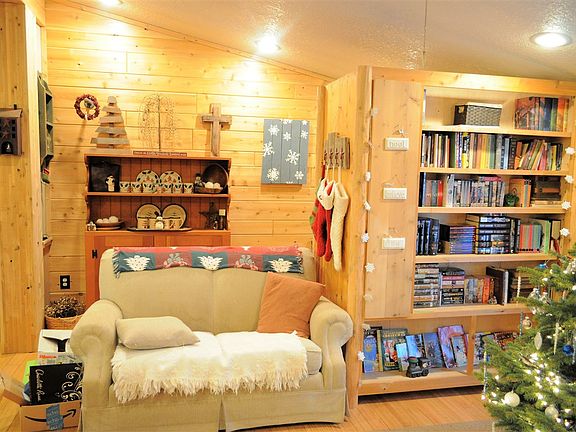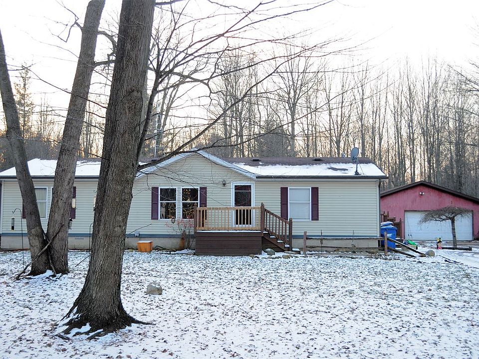 This 5.29 acre wooded setting with a large 32' x 24' garage/workshop with 220, an attached 30' x 12' lean-to, a separate 16' x 12' finished and heated man-cave or she-shed is ready to go! This home features a ton of custom upgrades including custom cedar doors, trim, and floors, a huge deck with a screened porch overlooking a large water feature and private back yard. The custom furnishings are negotiable.