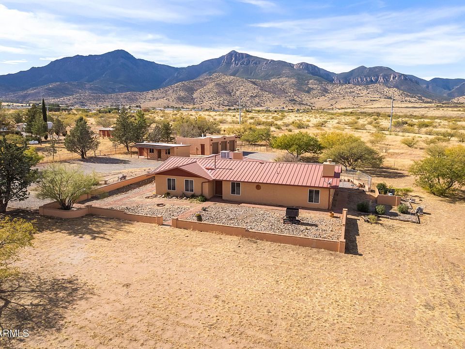 Seller priced to sell! Check out this solid built home with a metal roof, private well, giant detached garage or use it as a shop, and additional work shop, on over 4 acres, fully fenced and cross fenced, handicap accessible home, great curb appeal, low maintenance landscaped yard in the front and back, on a paved road with site built homes all around, close up views of the Huachuca Mountains!! If you have horses bring them and turn them out and