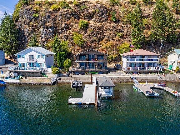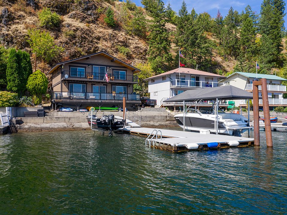 Lake Coeur d'Alene, Cave Bay, 53' Frontage, 4 Bdrm, 2 bath, 1344 sq ft. 2 story Home. Completely remodeled, beautiful kitchen, level to water. boat dock, year round access. community water and sewer.
