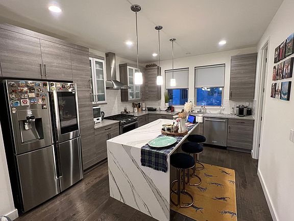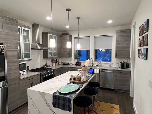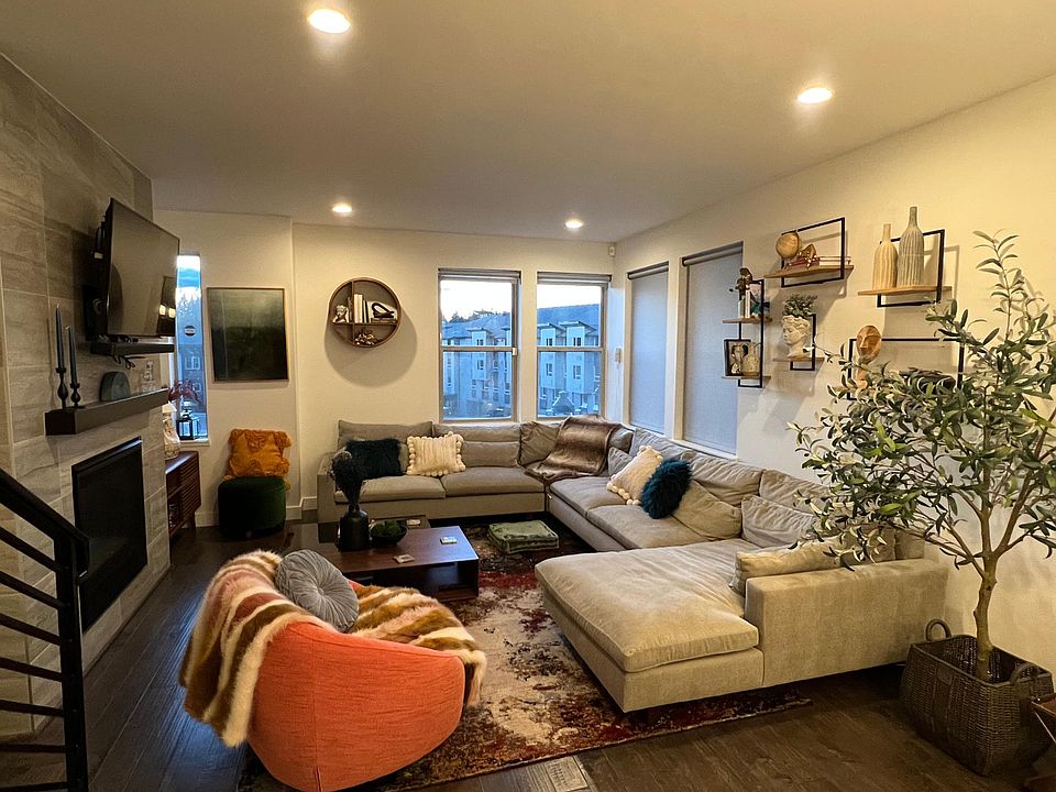 Corner unit modern SMART townhome with a large 2-car tandem garage in "Aldea at Newcastle Commons" community with a great walk score and minutes away from I-90/I-405. This unit is customized with high end cabinet finishes, hardwood floors, quartz countertop finishes in kitchen/island, in-unit washer/dryer, dishwasher, microwave/oven, 5 burner gas stove and a smart 4-door flex refrigerator with all stainless steel appliances. Living room is equipped with premium light filtering shades, bedrooms are equipped with blackout cellular shades, walk-in closet and various other upgrades. This unit also has a split AC, tankless water heater, and a cozy fireplace in the living. This unit has unrestricted access to the community pool, fully equipped fitness center, multiple dog parks, kids play area, barbecue and big lounge areas with high speed internet access. Happy to leave behind a 55" TV, wall mount (mantle mount MM540) and a Tesla wall charger for a small fee. This is where the modern townhome really connects to the world. Whether that world is a morning walk in the woods, an afternoon splurge in the shops, or an evening relaxing at the neighborhood fire pit. Don't wait for this unit to slip on by. Make an appt to see it today! Renter pays for all utilities such as water, gas, electricity and trash. Non smoking unit. One small pet allowed. Additional refundable deposit of $500 for pet.