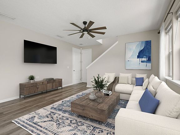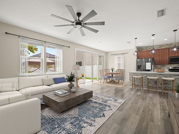 Come experience the perfect blend of style and functionality in this stunning home that boasts modern upgrades and an exceptional layout. Large windows and sliding glass doors allow natural light to pour into the living room and kitchen, highlighting beautiful finishes and top-of the-line smart appliances. The private bedroom and full bath on the first floor offer ultimate convenience, while the three additional bedrooms upstairs provide ample space for family and guests. Enjoy the fully fenced backyard equipped with fruit trees and a covered area to take in the approaching fall evenings! Go for a swim in the community pool or enjoy the nearby amenities that the Durbin Pavilion Town Center has to offer. With shopping, restaurants, movies and more only 1 mile away you will never get bored!