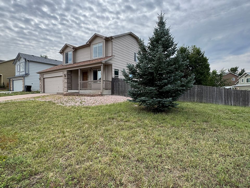 Don't miss out of this beautiful pet friendly, tri-level family home on a corner lot located in the Cimarron Hills area! The cozy 4 bedroom, 3 and half bath home welcomes you with , a 2 car garage, laundry room located on the main level, kitchen included with dishwasher, plenty of counter and cabinet space with a dining area attached and easy access to the very open and spacious fenced in backyard. Upstairs is the master bedroom with attached full bathroom, 2 other rooms comfortably spaced and another full bathroom. This property also includes a fully finished basement with its own bedroom, full bathroom, and living area. Located in the D-49 school district and only minutes from Powers, Peterson AFB, Schreiver AFB, access to I-25, parks, hiking trails, shopping, entertainment and more! **Move-in ready 8/11/2025 **All utilities will be in tenant's name and be their responsibility **Rental rate $2095per month **Monthly trash fee of $27.25 for services **Pet policy--Up to two pets allowed with a $300 per pet refundable pet deposit and $35 per month pet rent. No aggressive animals permitted.