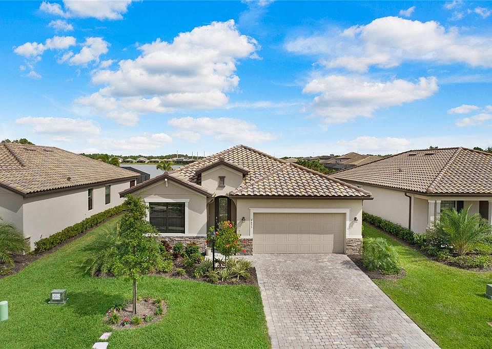 Your Florida paradise awaits in this gorgeous & nearly new home situated on a huge pond in highly desired Polo Run at Lakewood Ranch. This popular Marsala smart home floorplan was built in 2021 and features 3 bedrooms, a den/flex room, 3 full bathrooms, and a 2 car garage. You will fall in love with this home's curb appeal with its pavered driveway, lush tropical landscaping, and beautiful Mediterranean elevation with barrel tile roof. A light and bright foyer welcomes you into the home, with the beautiful 8 foot glass front door allowing lots of light to cascade into this space. Just off the foyer is a large secondary bedroom with walk-in closet and adjacent full bathroom with oversized vanity with granite counter. A flex room located just off the foyer includes double doors for added privacy, making this the perfect space to use as an office, den, playroom, formal dining room, or even a 4th bedroom if desired. Just opposite the flex room is another ample sized bedroom with an en-suite bathroom including walk-in shower and wide vanity with granite counter. The hallway beyond the foyer leads you to the heart of the home - your open concept kitchen and great room, which includes plenty of space for formal dining or more casual eat-in dining. Your beautiful kitchen features extended Tahoe linen cabinets with triple-carved waterfall edges finished with decorative crown molding, granite counters, subway tile backsplash, stainless steel appliances including gas range, corner walk-in pantry, recessed LED lighting, and counter height island which provides additional seating. Triple sliders just off the great room lead you to your own private paradise - the covered, screened lanai with incredible sweeping views of a huge, peaceful pond. Back inside, situated at the back of the home is your spacious Owners Suite, with modern en-suite bath that includes large walk-in shower, soaking garden tub, extended vanity with granite counters and double sinks, and dual closets just outside. A utility room is situated just off the entry into the garage and includes washer, dryer, utility sink, and cabinet space to help make laundry day a breeze. Energy efficiency is also improved with the home's solar panels, slashing electric bills in half. Other upgrades to the home include added 4-can recessed lighting with dimmer switches in each of the bedrooms and in the flex room; added mini split and extra insulation in garage for comfortable climate control; crown molding throughout all of the living areas and in the Owners Suite; modern 12 x 24 plank tile flooring throughout all of the living areas and in the bathrooms; tankless gas water heater; Ring video doorbell; Wi-Fi thermostat; wireless garage door opener; and rain gutters. Situated in highly coveted Polo Run in the country's #1 selling master planned community of Lakewood Ranch. Polo Run is the first solar powered village in Lakewood Ranch and is a gated, maintenance free community, with amenities perfect for the active lifestyle including large lakeside clubhouse; fitness center; bocce, tennis, pickleball, and basketball courts; playground; dog park; and resort style pool. Zoned for highly desired Gullett Elementary, Mona Jain Middle, and Lakewood Ranch High School, with endless options for world class shopping, dining, UTC Mall, Lakewood Ranch Medical Center hospital, and medical facilities located nearby, and award winning Gulf coast beaches like Siesta Key Beach just a short drive away.